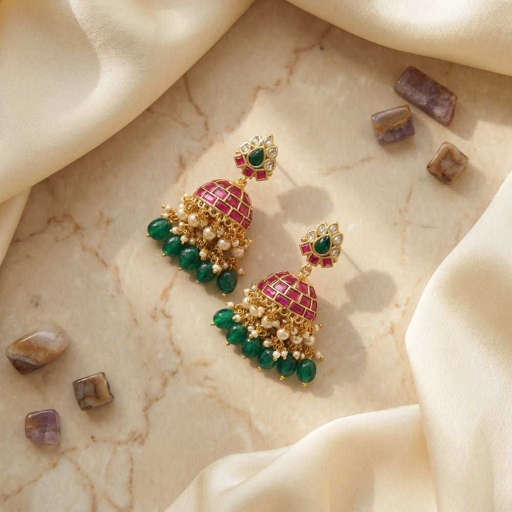 Our designer jewelry is unique and each piece is different. Our jewelry is made of brass, copper and/or silver. Please note that the silver content is not guaranteed and can vary in each individual design. Some of the most commonly used stones in our jewelry are cubic zirconia, cultured pearls, lab-made rubies, emeralds, blue sapphires, amethyst, and garnet
