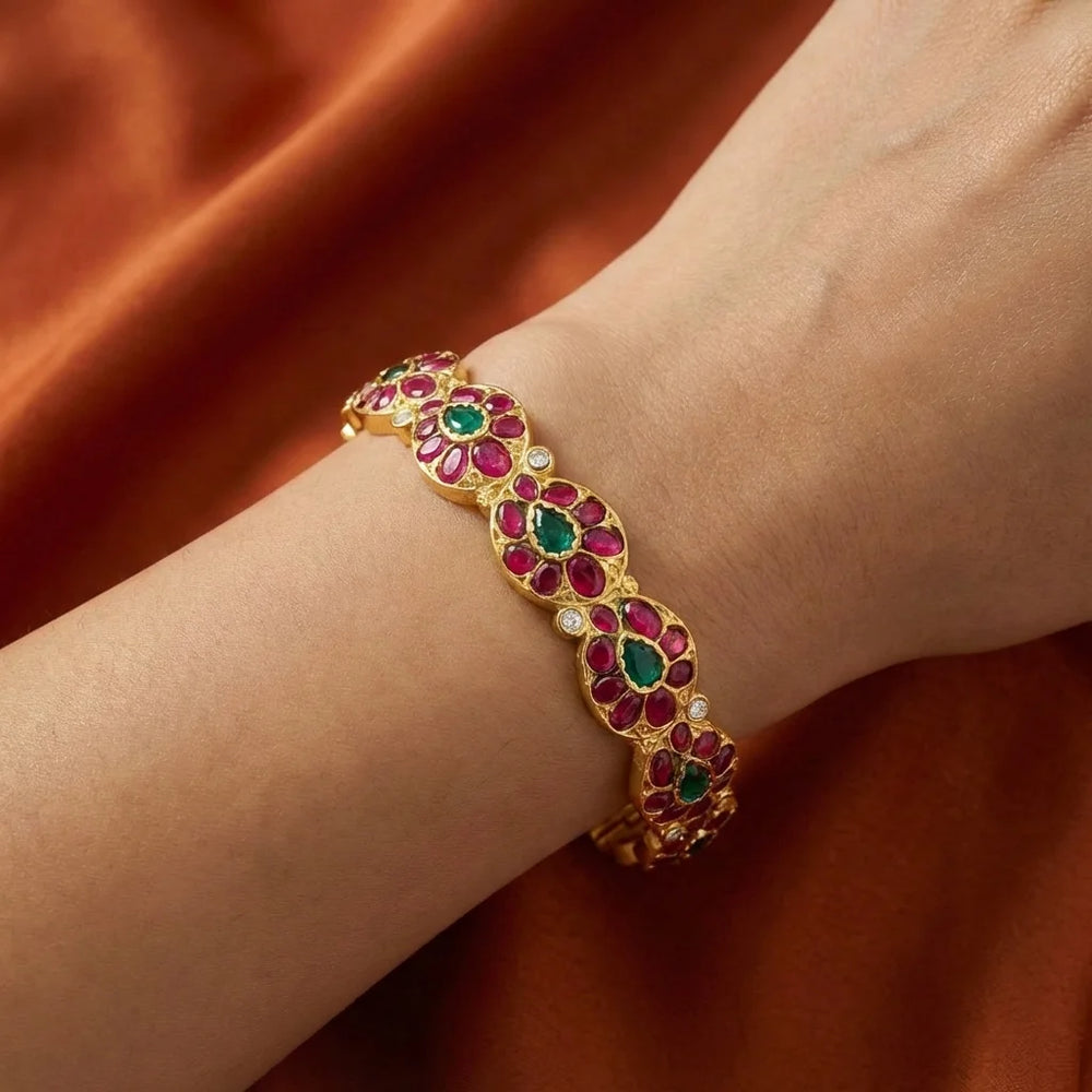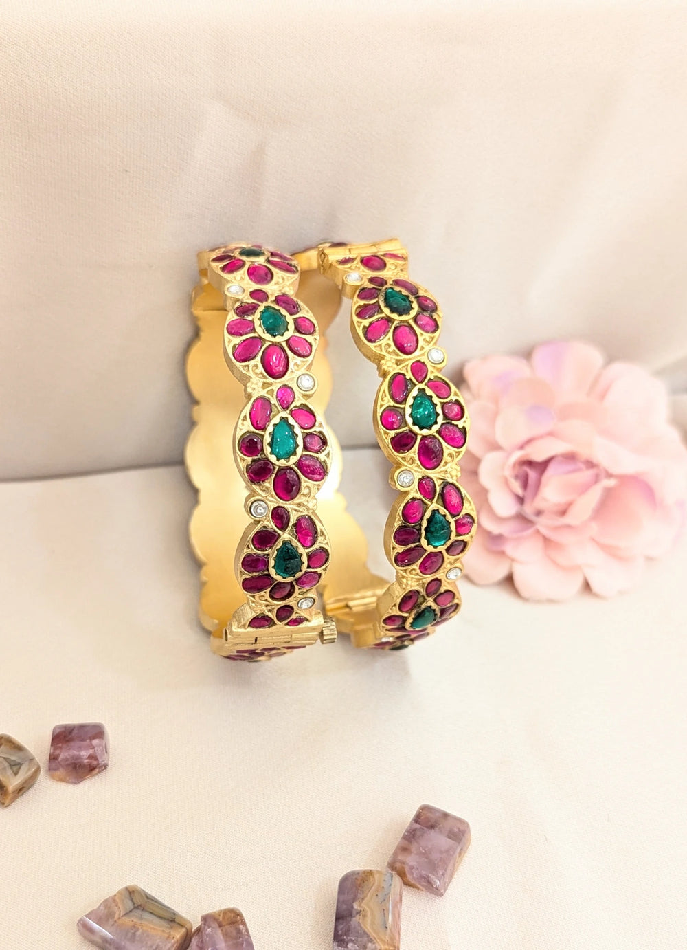 A graceful pair of bangles that blends heritage design with vibrant elegance, perfect for elevating your festive jewellery collection. ✨