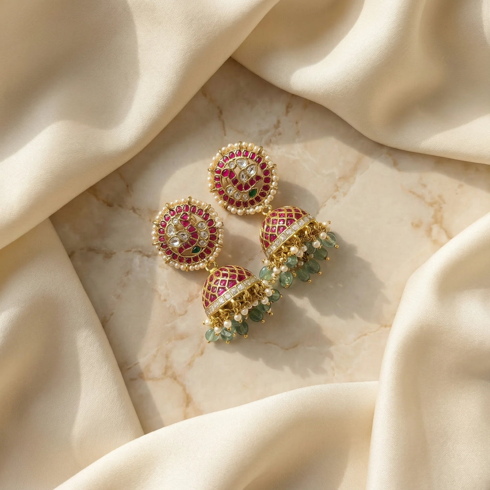 A timeless pair of jhumkas designed to celebrate heritage artistry while offering refined elegance and distinctive detailing for traditional ensembles.