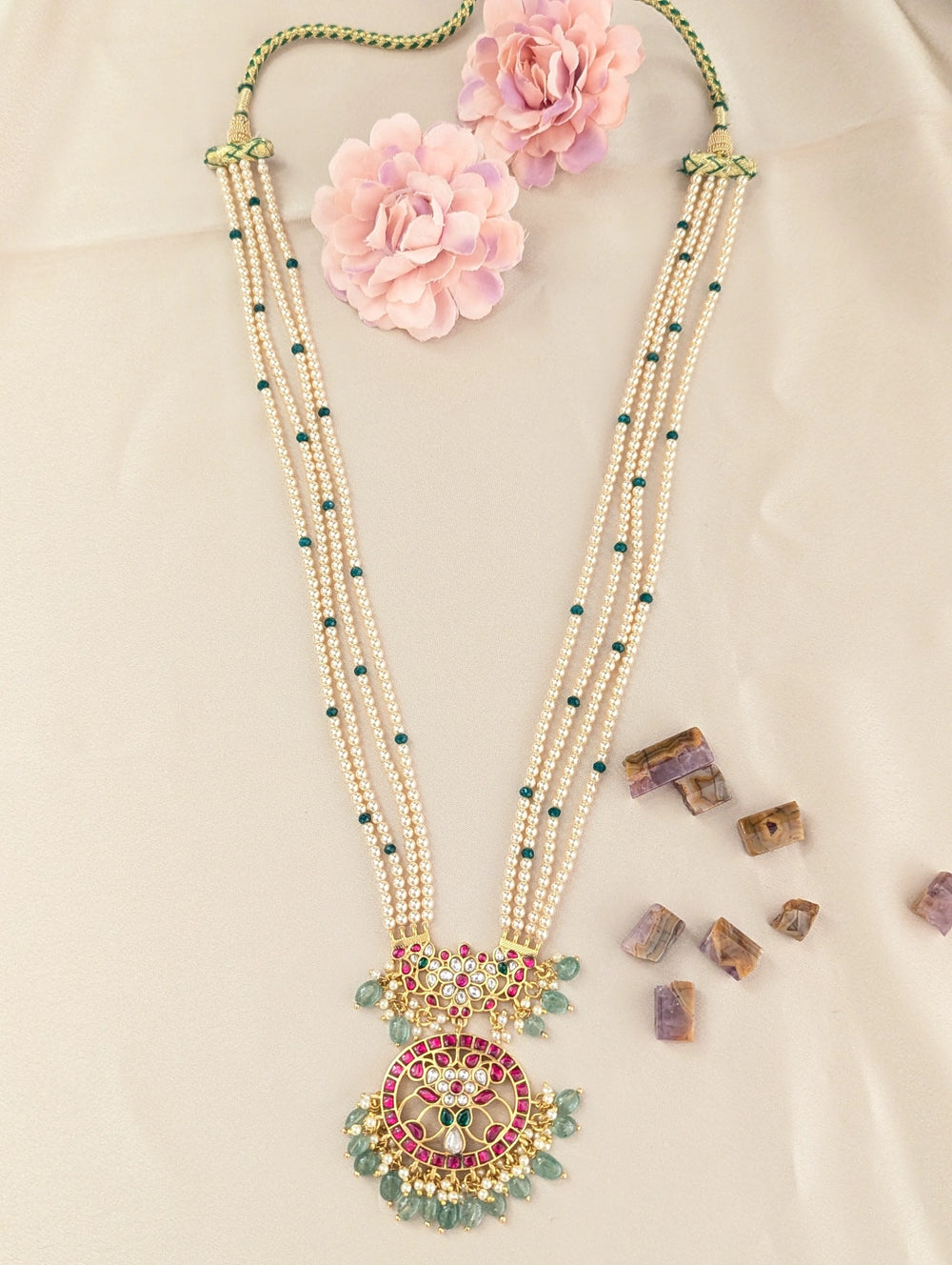 • Design: Multi-Strand Pearl Mala with Statement Pendant
