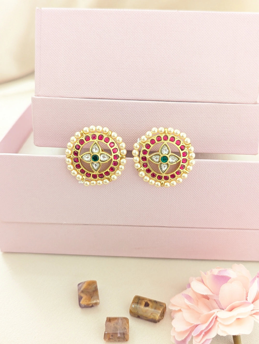 Jadau kundan studs with pearls